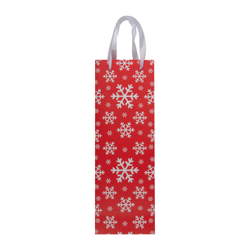 Papieren wijntas met leuk kerstmotief. Uw logo drukken wij op een etiket wat wij op de tas zullen plakken