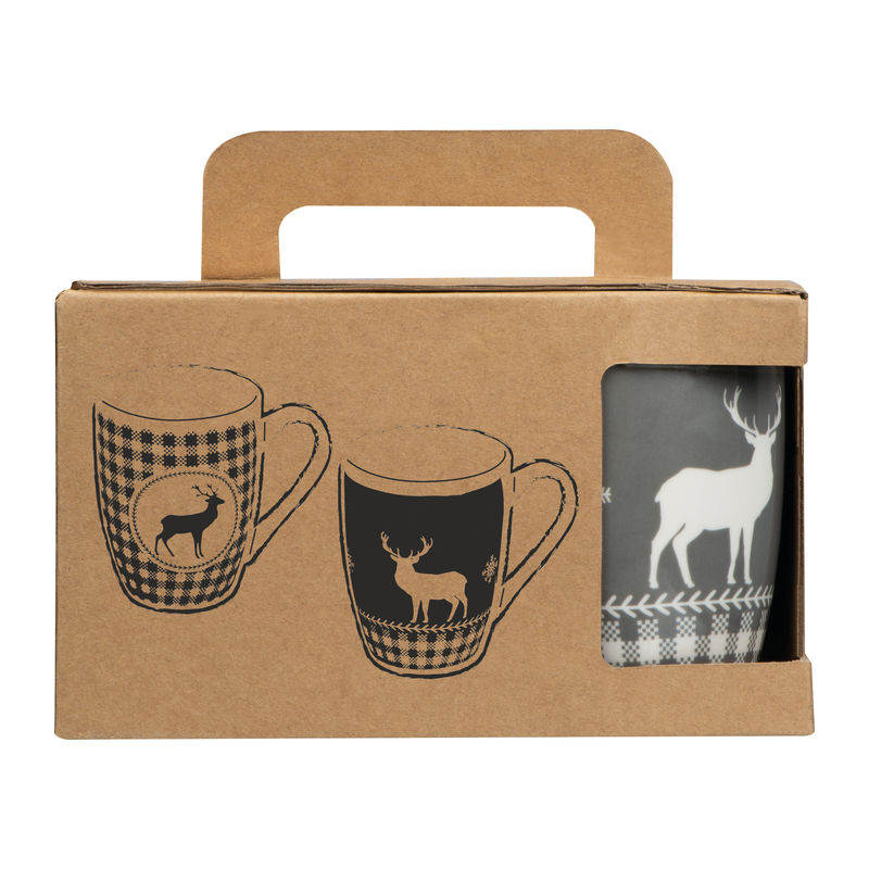 Set van twee keramische mokken met een kerstmotief, elk met een inhoud van 300 ml.De ingenieuze verpakking is eenvoudig in elkaar te zetten en heeft een handvat. Uw reclame wordt op de verpakking geplaatst.