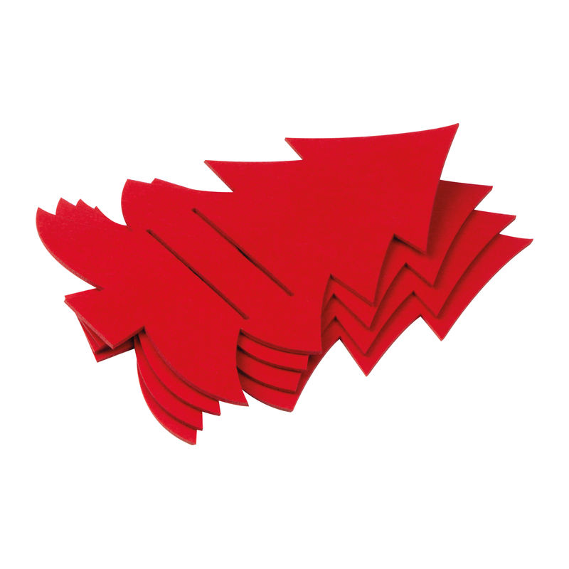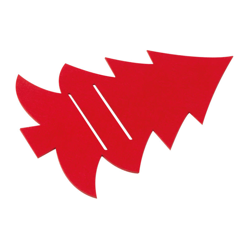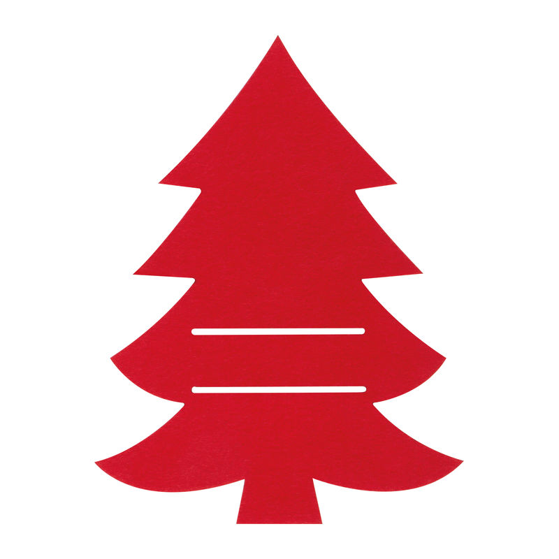 Kerstbestekonderlegger van vilt in kerstboom-look, geschikt voor messen, vorken en lepels. Uw reclame wordt op de voet gegraveerd.
