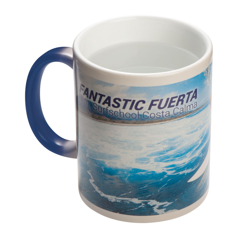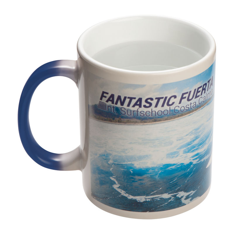 It's magic! Verras uw klanten met deze unieke sublimatie mok (300 ml). Als de mok koud is ziet u niets maar uw logo/ foto verschijnt op magische wijze als u warme drank in de mok giet en zal weer verdwijnen zodra uw mok af koelt. Wij raden altijd aan bedrukte mokken met de hand af te wassen. Uw reclame brengen wij rondom aan op deze mokken. (er moet altijd een afstand van 2 mm boven en onder de rand vrij blijven en 1 cm van het handvat)