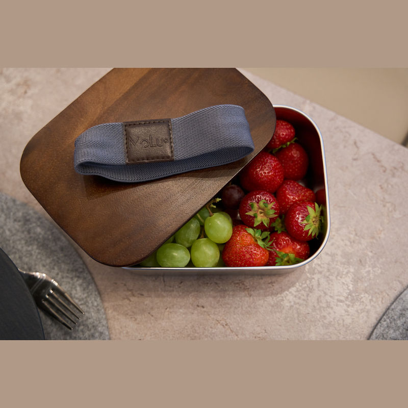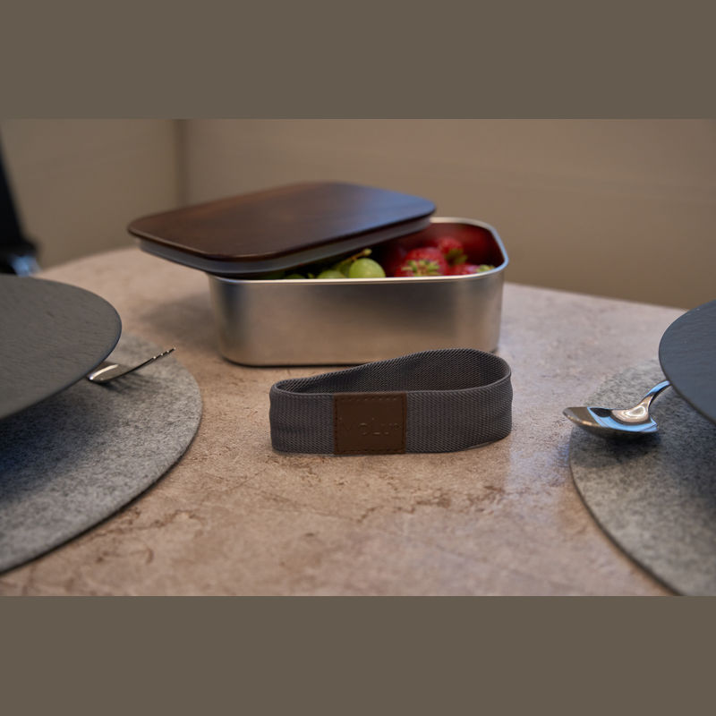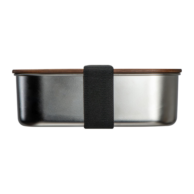 Elégante boîte à lunch en acier inoxydable recyclé de 1000 ml avec couvercle en bois d'acacia. Fermeture sûre grâce à un élastique. Publicité gravée sur le couvercle - discrète et efficace. Idéal comme cadeau publicitaire élégant ou comme compagnon de tous les jours. En raison de matière naturelle, chaque article et chaque gravure sont uniques.