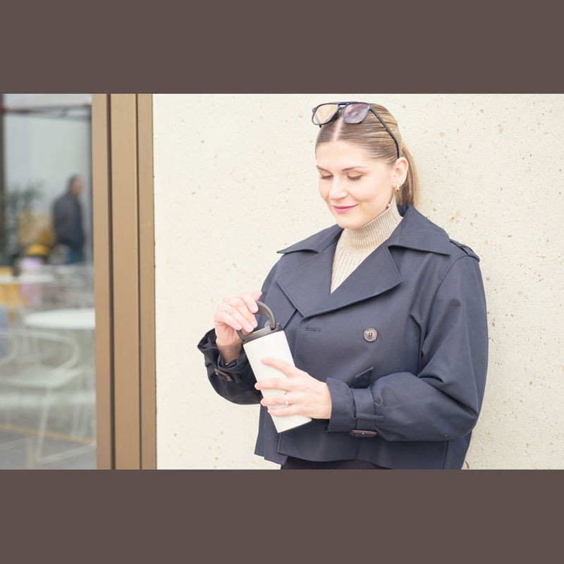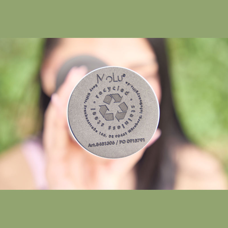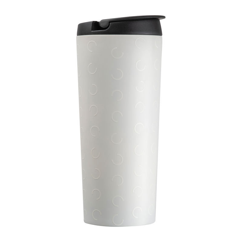 MoLu drinkbeker met hoefijzerlogo – een stijlvol hoogtepunt van hoogwaardig roestvrij staal met subtiele ton-sur-ton gravure. Houdt dranken tot wel 18 uur warm of koud. Met een inhoud van 450 ml is hij perfect voor onderweg. Uw logo wordt nauwkeurig onderaan in het midden gegraveerd.