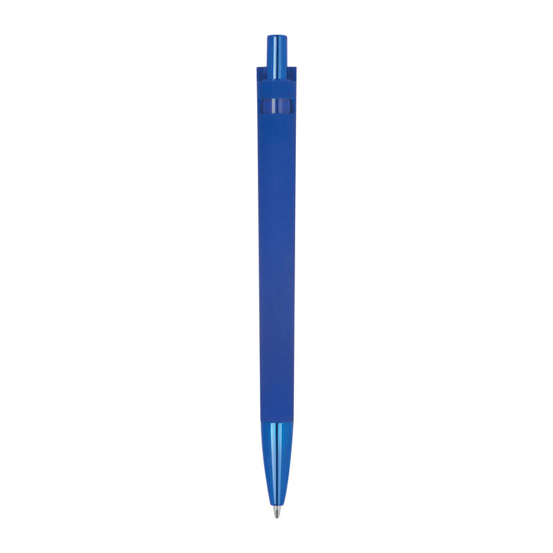 Deze hoogwaardige blauwschrijvende balpen, gemaakt van gerecycled ABS, overtuigt met zijn robuuste constructie. Het rubberen oppervlak biedt een aangenaam schrijfcomfort, terwijl de punt en de drukknop zijn afgewerkt met een verfijnde UV-plating. Uw reclame wordt via digitale druk op de balpen geplaatst.
