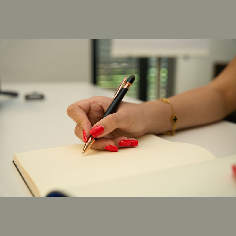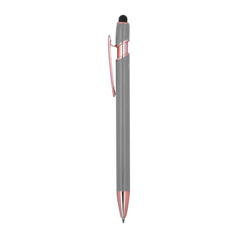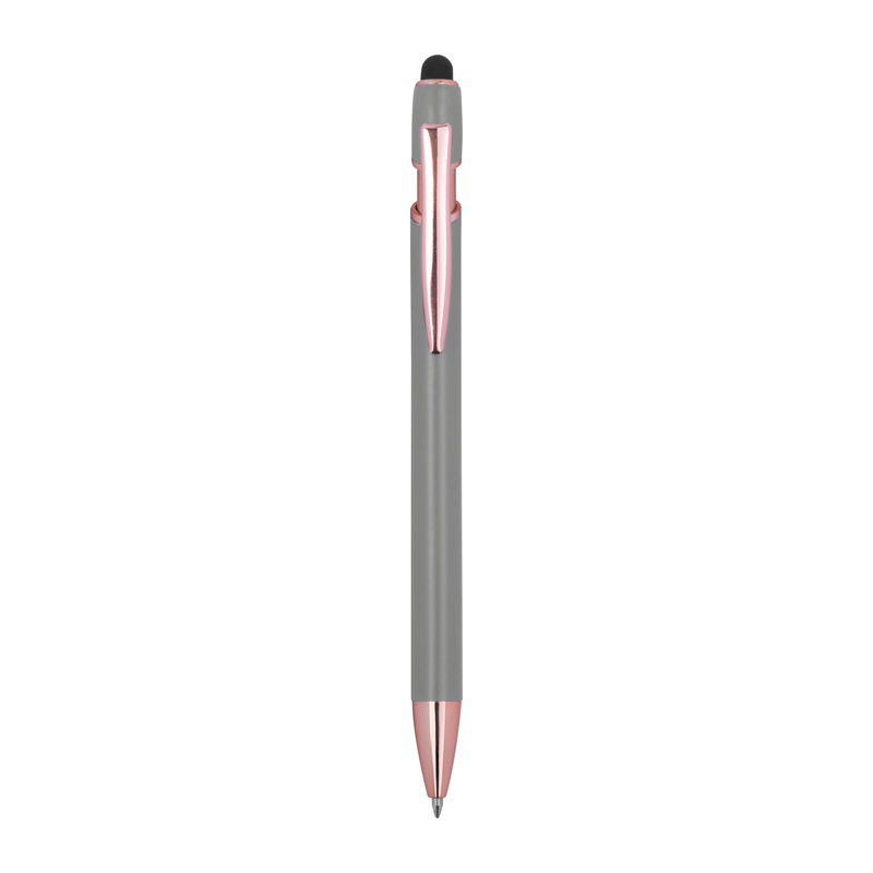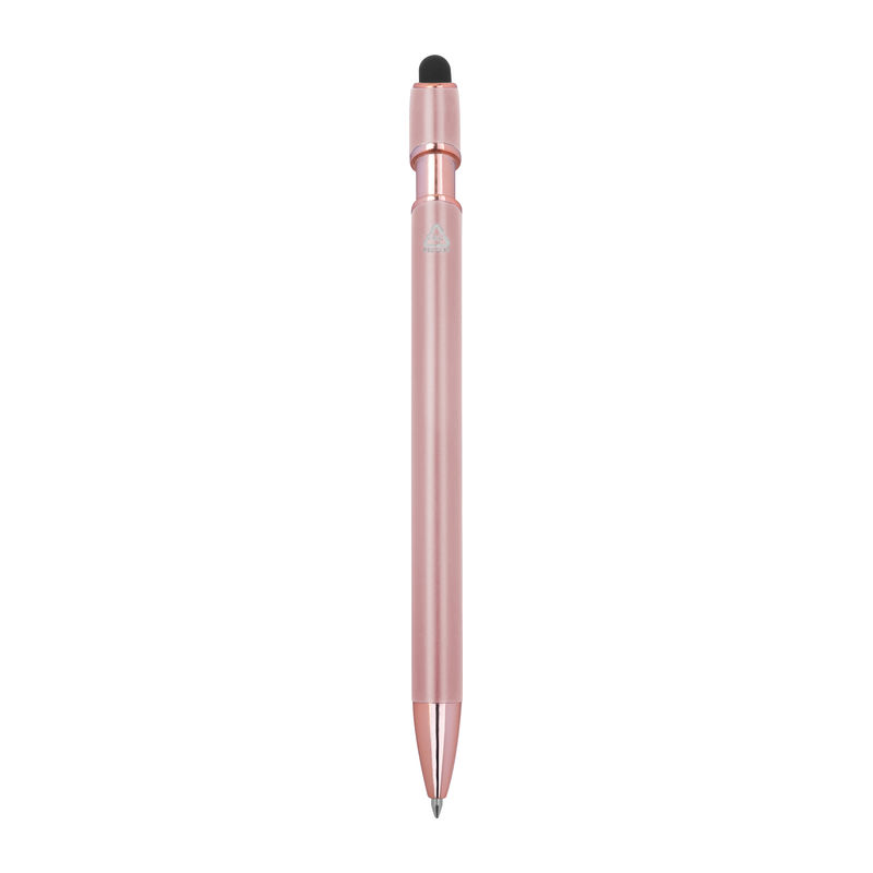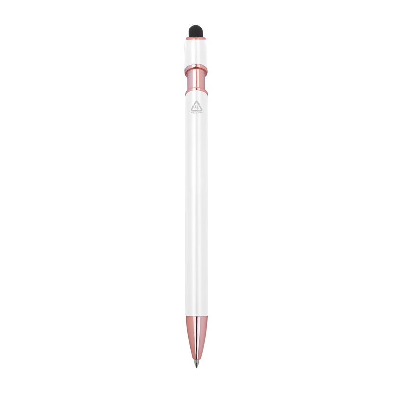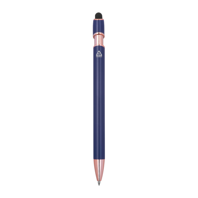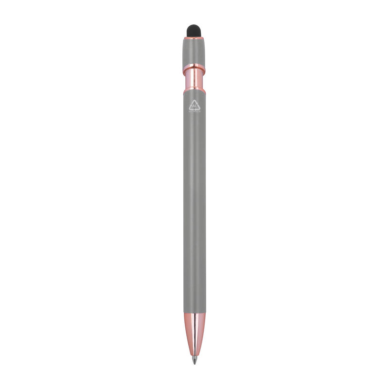 Semi-gel pen crafted from recycled aluminium, featuring a touch pen and a blue ink large-capacity refill (1 mm tip).
