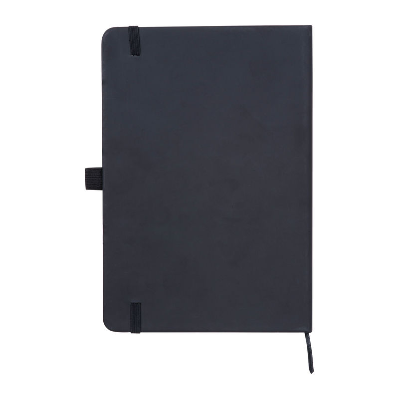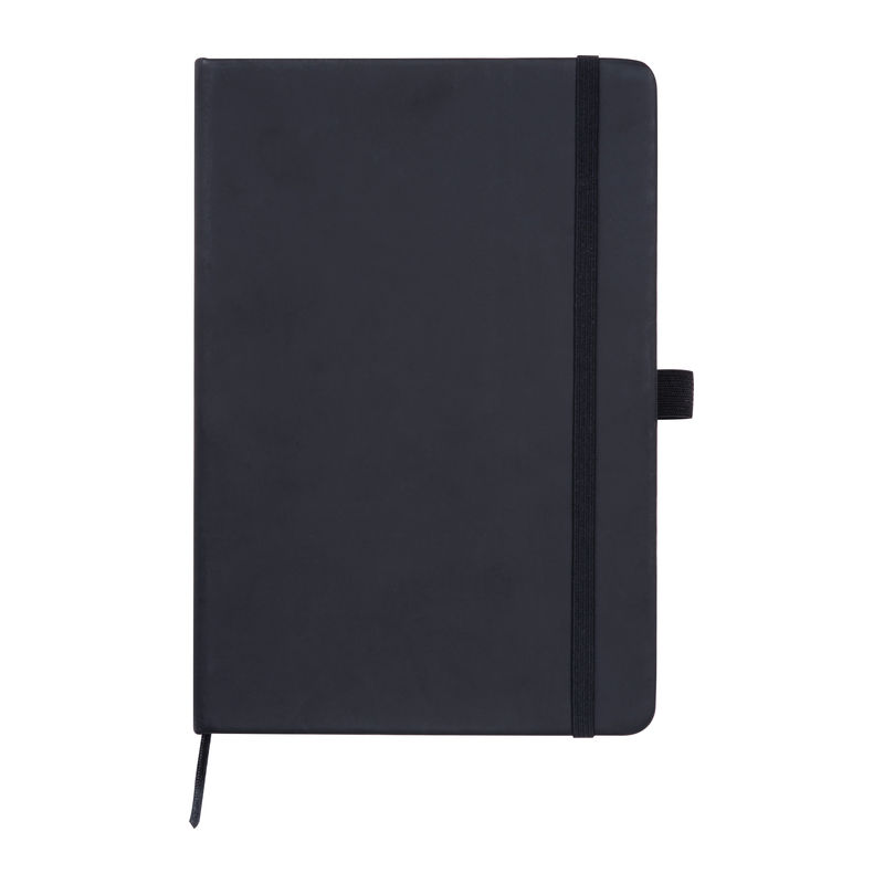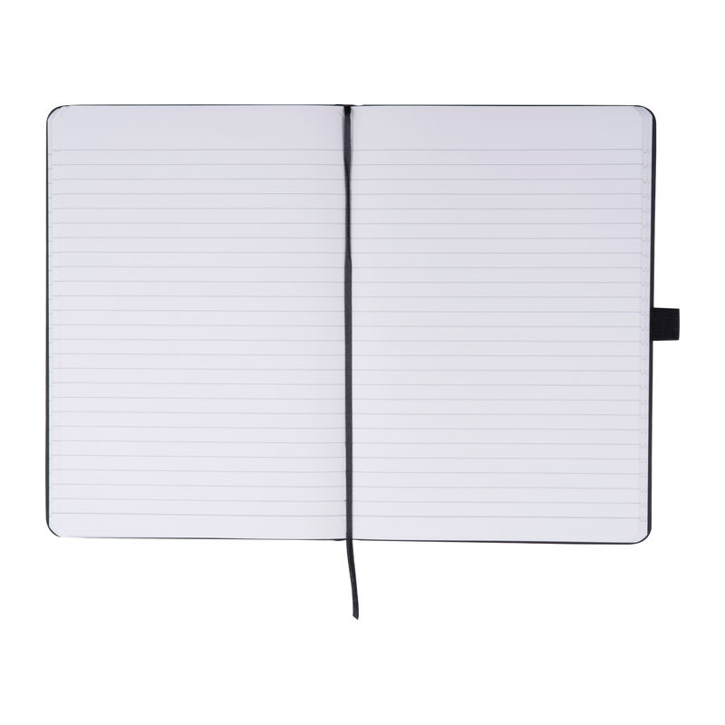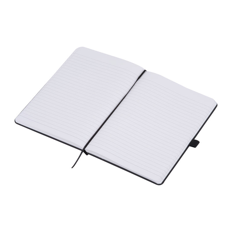 A5 notebook with a PU cover, bookmark, closure band, pen loop, and 120 lined pages made from stone paper. This unique paper, composed of calcium carbonate, is oil- and water-resistant, antistatic, flame-retardant, smooth, and notably tear-resistant.