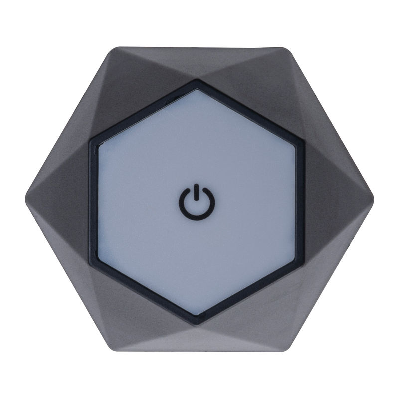 Table lamp featuring a stainless steel base and a polypropylene lampshade. The lamp is equipped with a 1,800 mAh lithium-ion battery (3.7V) and 28 LEDs, delivering 130 lumens at 2.5 watts. It offers seamless dimming via a touch sensor, allowing adjustment between 3,000K (warm light) and 6,000K (cool light). A one-metre USB-C charging cable is included. The lamp provides an approximate burn time of 5 hours when fully charged.