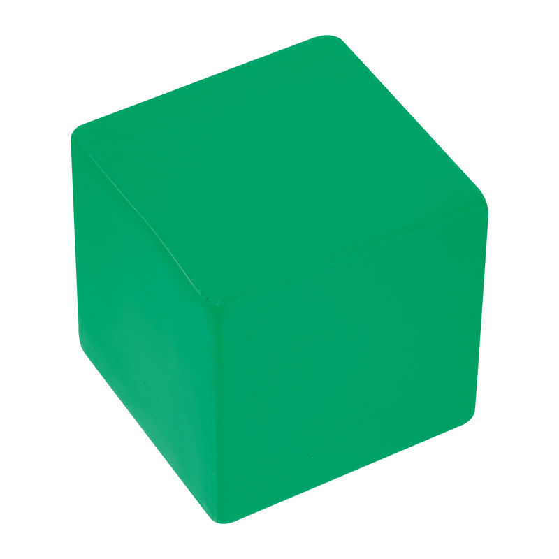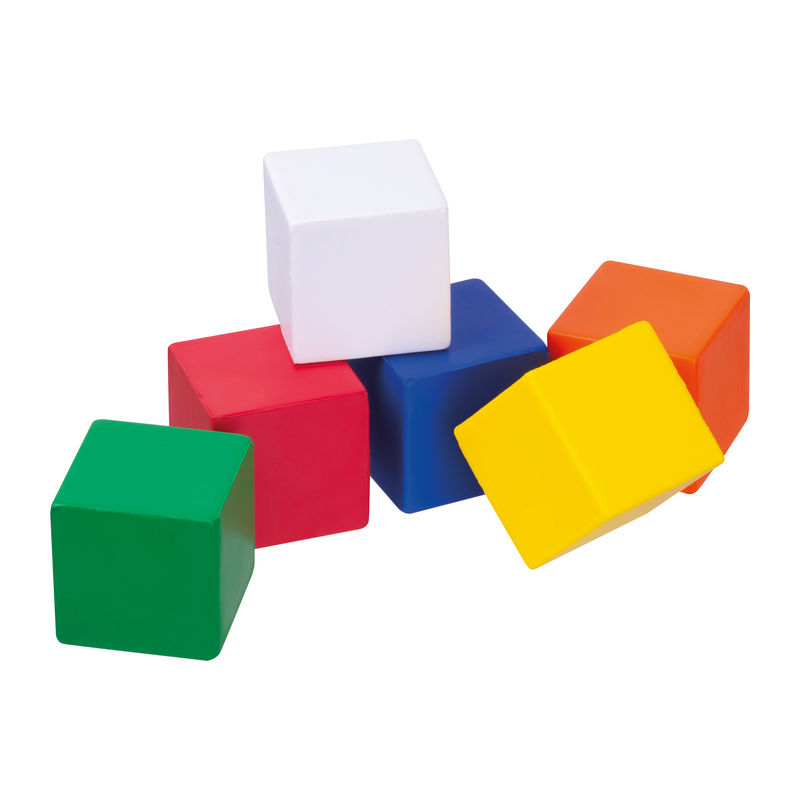 Anti-stress cube crafted from foamed polyurethane (PU).