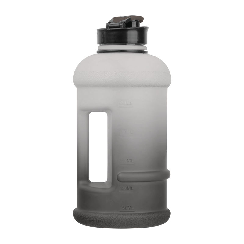 Extra-large drinking bottle made of plastic, featuring a drinking level indicator and a capacity of 1,300 ml. The grip indentations ensure a secure hold while drinking, and the velvety surface provides an exceptionally pleasant tactile experience.