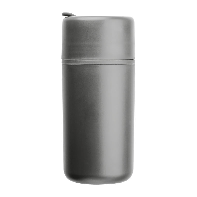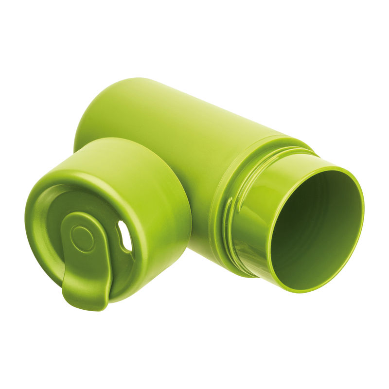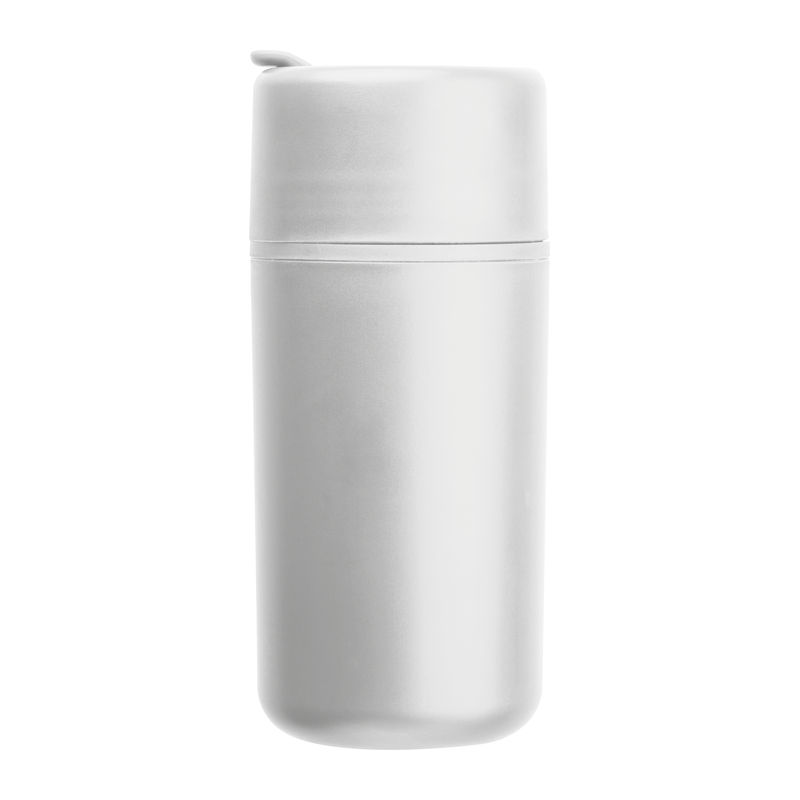 Double-walled thermo mug made of polypropylene with a capacity of 500 ml, featuring a sliding drinking lid.