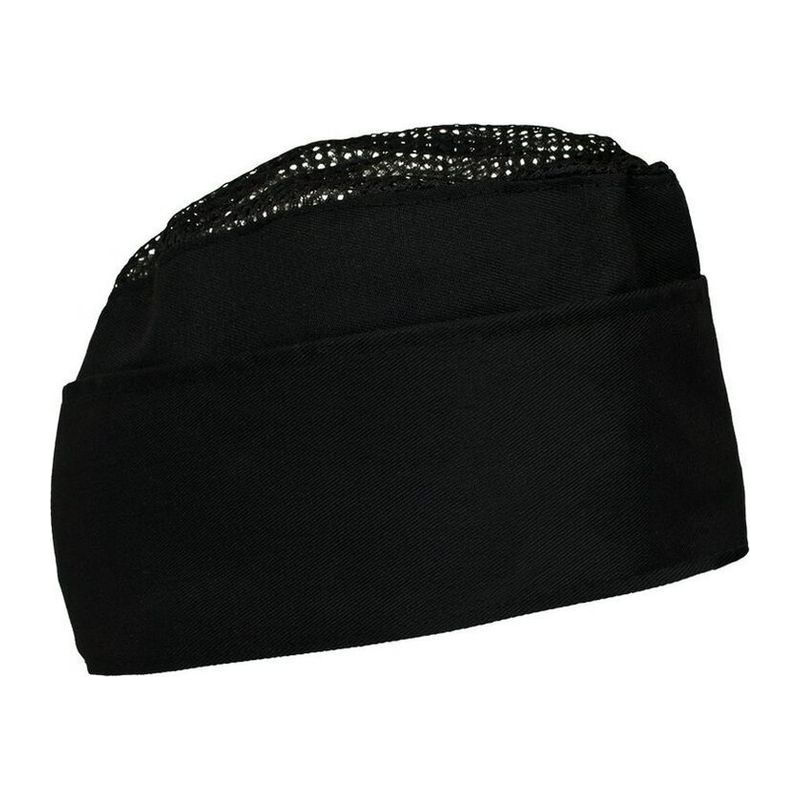 Cooking hat made of 65% polyester and 35% cotton. Ventilation mesh on top, velcro closure. Grammage 200 g/m2 twill fabric.