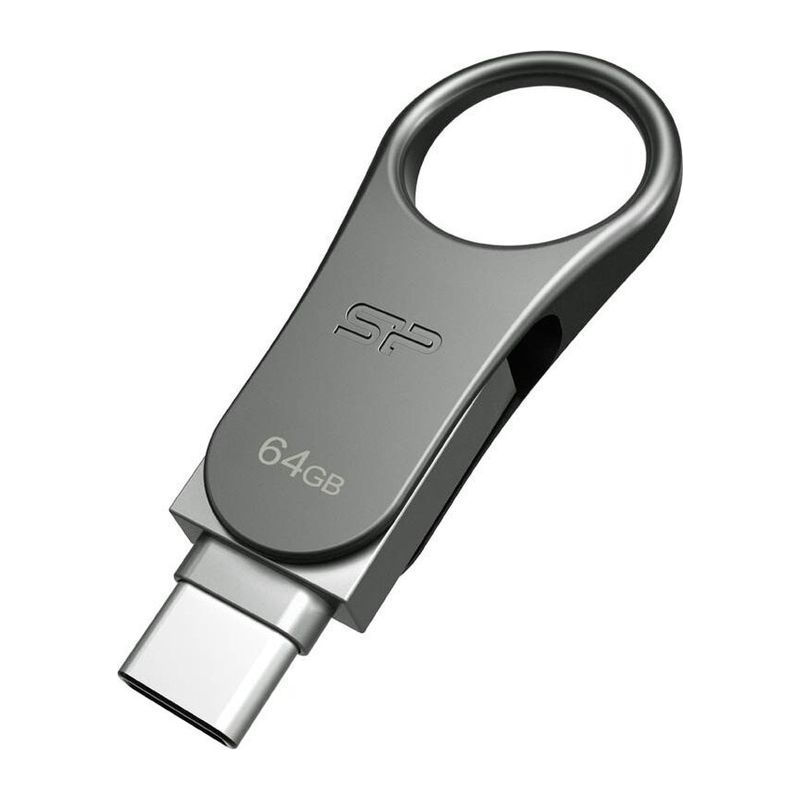 Mobile C80 USB drive has a dual interface that supports both for USB Type-C and standard USB Type-A ports. 360° swivel cap design, ergonomic design fitting for a keychain, zinc alloy casing, COB (Chip-on-board) technology, water, dust and vibration p