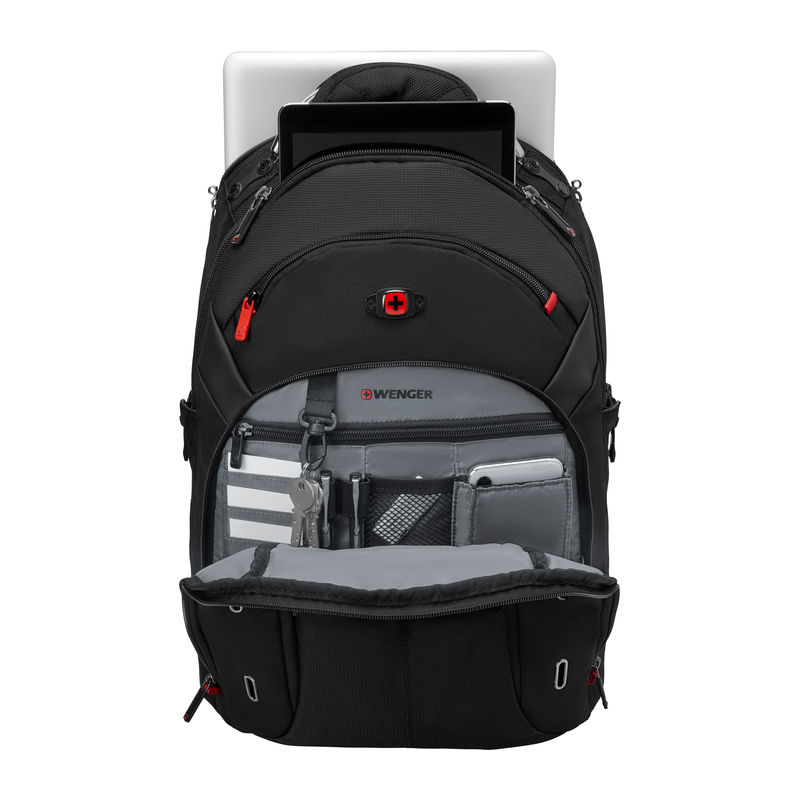 Fits most 15" notebooks. Protective notebook compartment. Tablet pocket. Shock absorbing shoulder straps. Reinforced carrying handle.