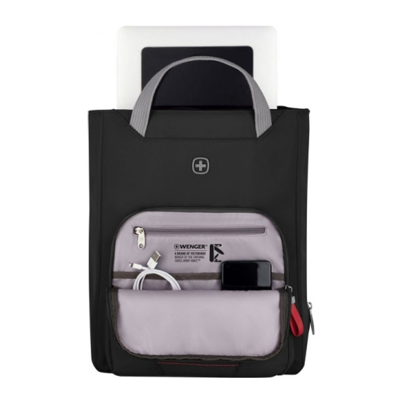 Tote bag with a pocket for a 15.6'' laptop, a 10'' tablet, widened bottom and straps, thanks to which it can also be worn as a backpack. Key features: Can be carried as a tote or a backpack Bottom three-side expansion via zipper for additional packing space Padded compartment for an up to 15.6'' laptop Dedicated padded 10'' tablet pocket Spacious, zippered main compartment Essentials organizer keeps power cords, chargers and business cards neat and accessible Interior zippered pocket with fleece lining that prevents scratching of your items Pass-Thru trolley strap slides over wheeled luggage handles for easy travel with multiple bags Adjustable shoulder straps for maximum comfort Grab handle for easy carrying Capacity 18 l Weight ).6 kg